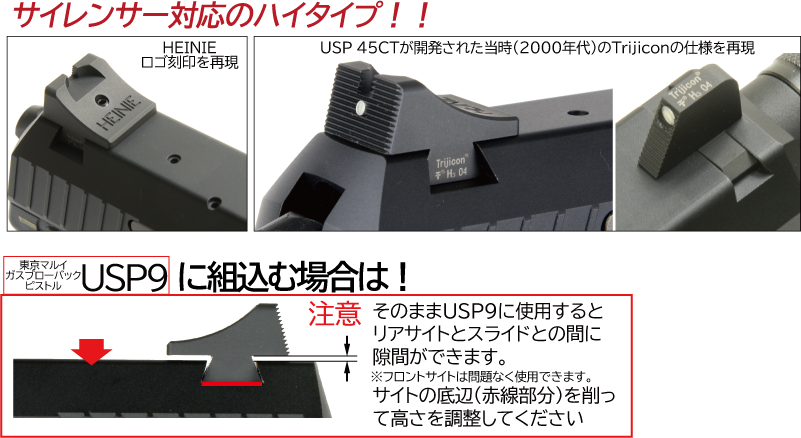 Detonator Luminous HEINIE Style Night Sight for Marui USP Compact (Tri style)