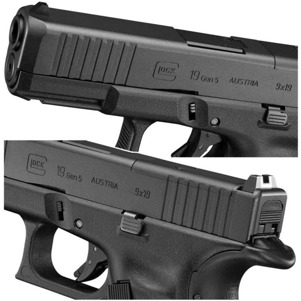 - Compatible with separately sold micro-pro sights - MOS compatible cylinder - Reproduce the 5th generation G19 - Grip back strap included - New Gen. G19 magazine